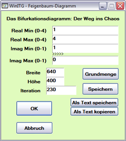 - Neu Grundmenge [###]: Die Standard-Mandelbrot-Menge wird als Parameter übernommen.