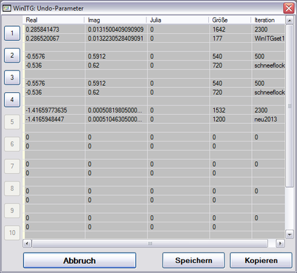 - Speichern: Die Einstellungen werden in der Datei 2222.kdt mit gespeichert, die auch die Standard-Mandelbrotmenge enthält.
