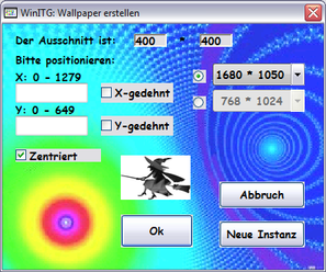- Neu aus Aktuellem [+++]: Das vorhandene Bild wird mit den gleichen Koordinaten neu initiiert. Damit können die Parameter auf einfache Weise bearbeitet werden.