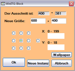 - die Größe des Ausschnitts angezeigt wird (gleichzeitig Ausgang aus der Funktion),