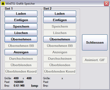 Durch Rechtsklick kann über das Kontextmenü entweder nur im Programm gesetzt oder gesetzt und gespeichert (als WinITGSetx.kdt) werden. Wenn gespeichert wurde, wird die Menge beim nächsten Programmstart mit eingeladen und steht wieder zur Verfügung.