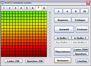 - Geladen 1 - 6: die geladene Farbtabelle wird aktiviert. Mit dem + dahinter kann jeweils eine Farbtabelle geladen werden.