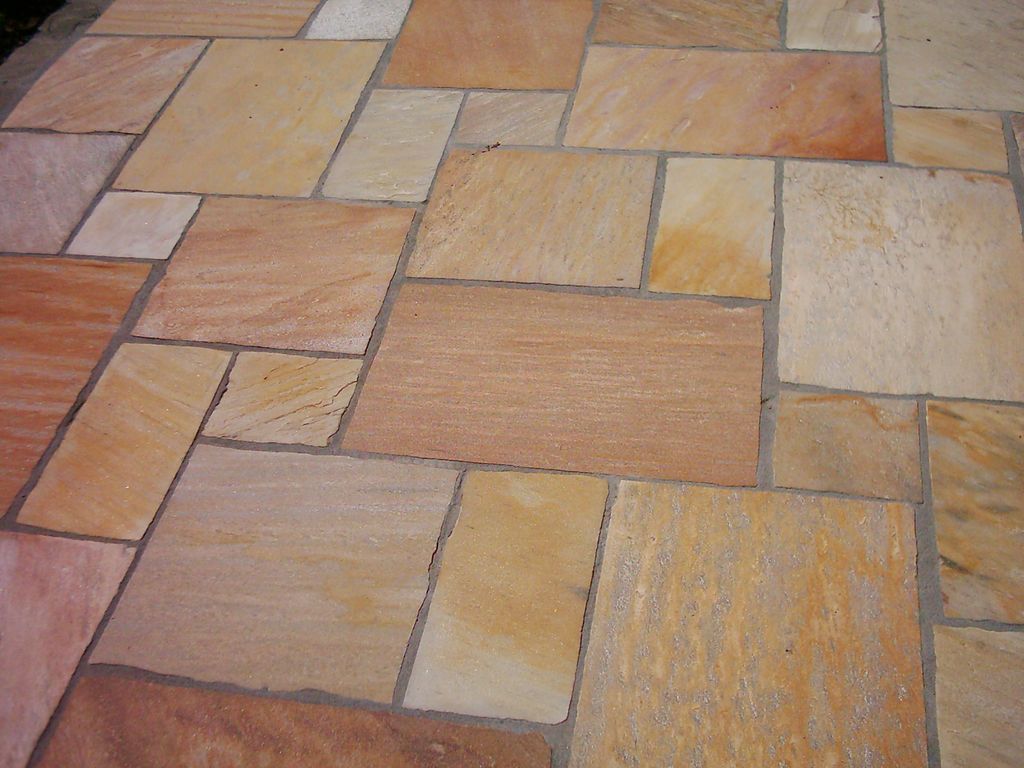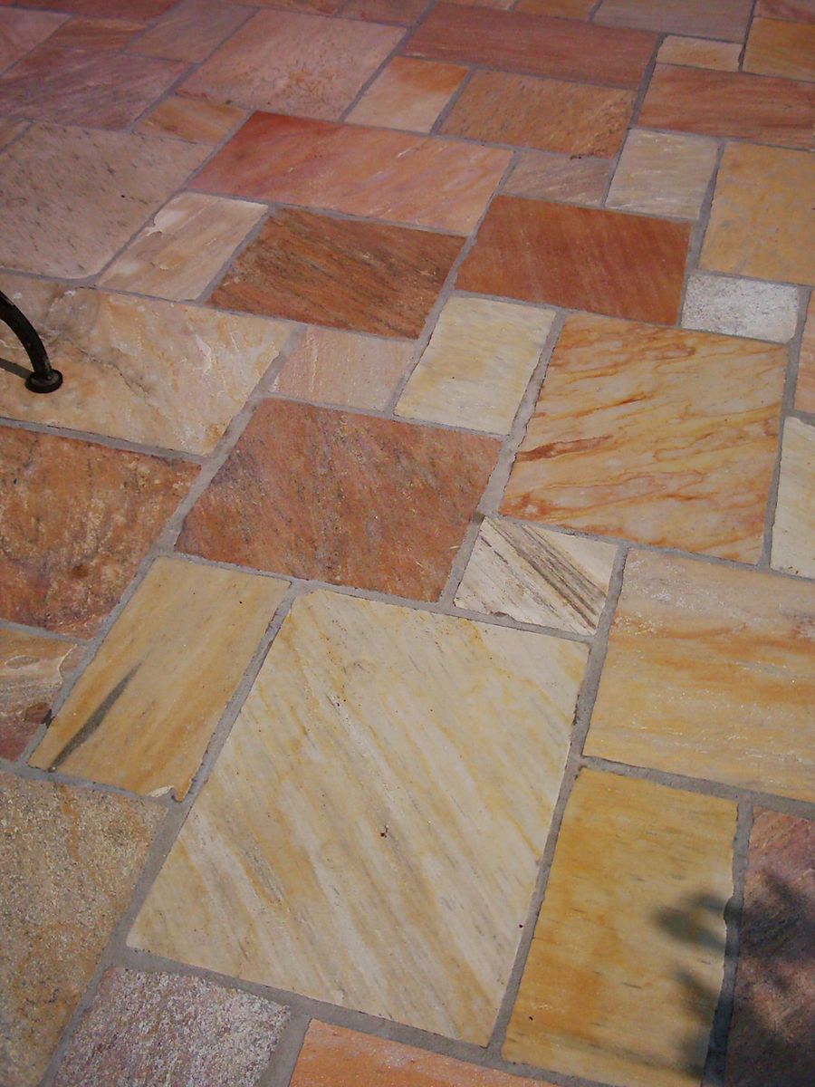 Terrasse aus wiederverwendetem rotem Sandstein/