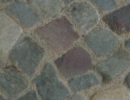 Pflasterung im Passe-Verband aus Granit-Mittelpflaster.